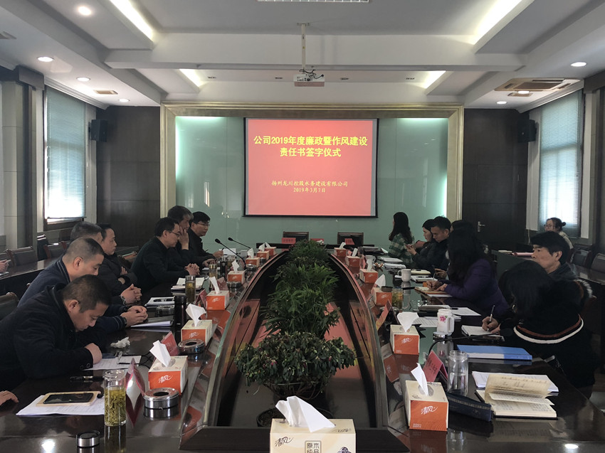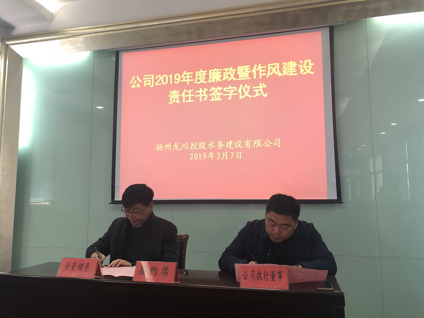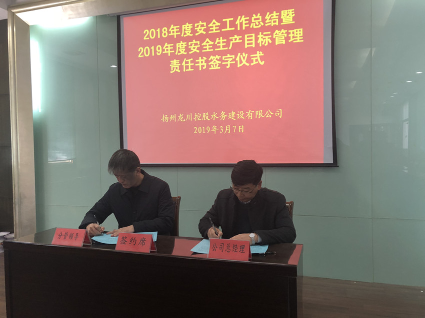 為切實(shí)加強(qiáng)和維護(hù)好公司一年一度的安全和諧與穩(wěn)定,層層落實(shí)好公司的各項(xiàng)廉政暨作風(fēng)建設(shè)責(zé)任,深入推進(jìn)公司黨風(fēng)廉政建設(shè)、反腐敗和安全工作,3月7日下午,揚(yáng)州龍川水務(wù)公司舉行了2019年度安全生產(chǎn)目標(biāo)管理責(zé)任書和廉政暨作風(fēng)建設(shè)責(zé)任書簽訂儀式。公司黨政領(lǐng)導(dǎo)班子全體成員及各分公司和各部門所有負(fù)責(zé)同志都參加了會(huì)議。