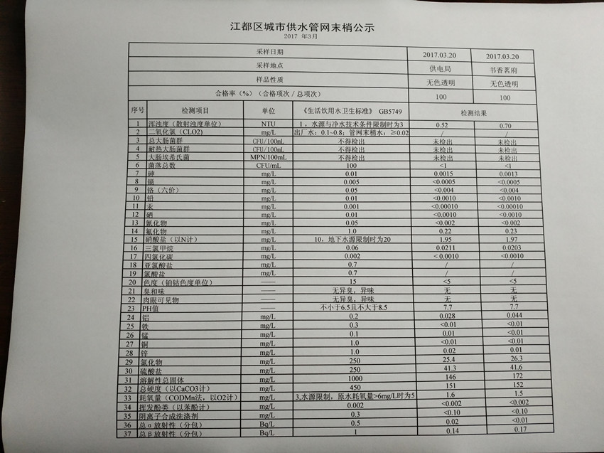 水質(zhì)公示