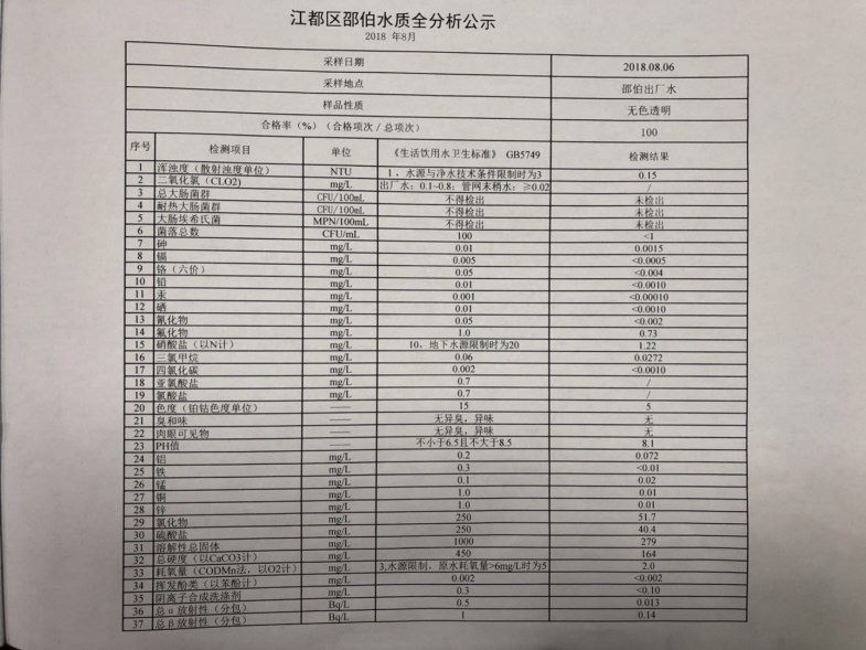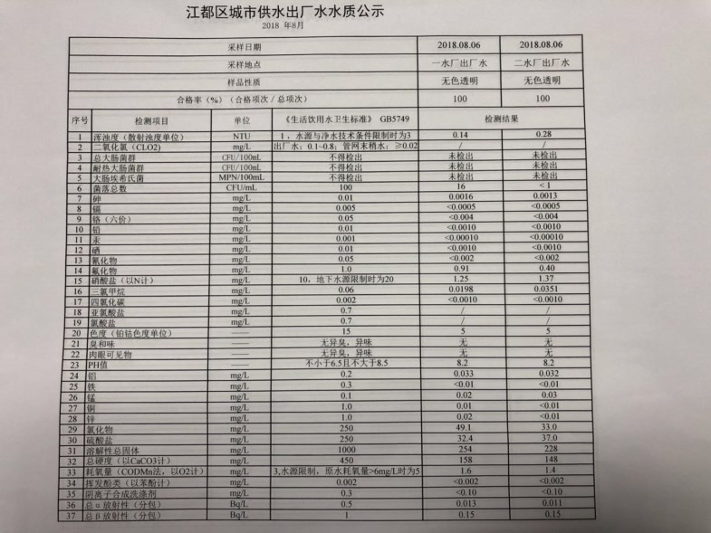 水質(zhì)公示