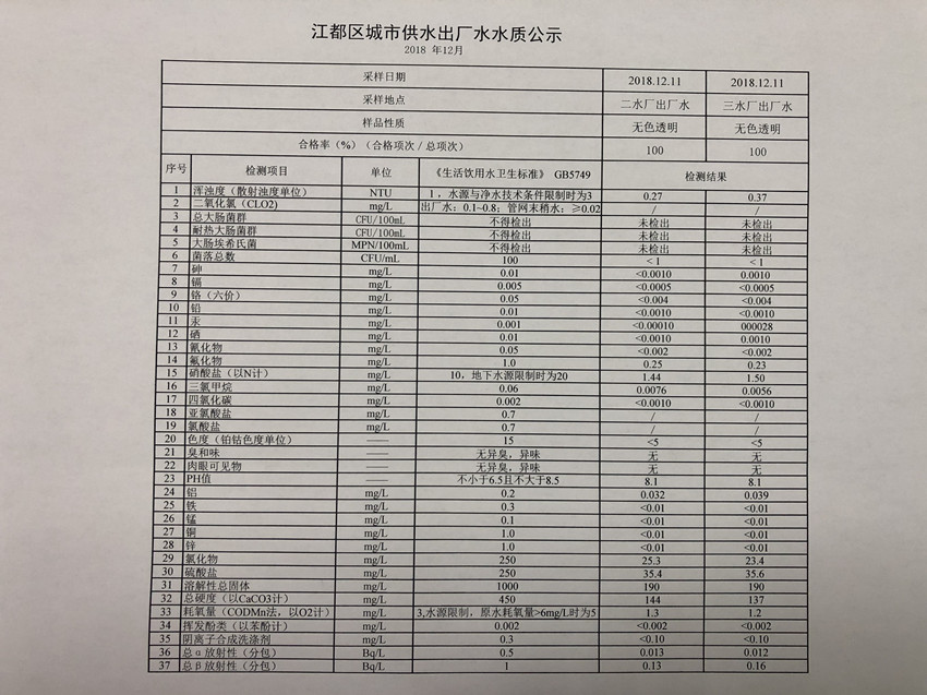 水質(zhì)公示