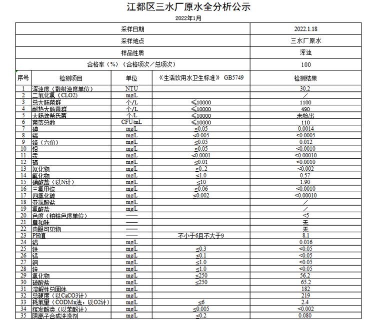 水質(zhì)公示