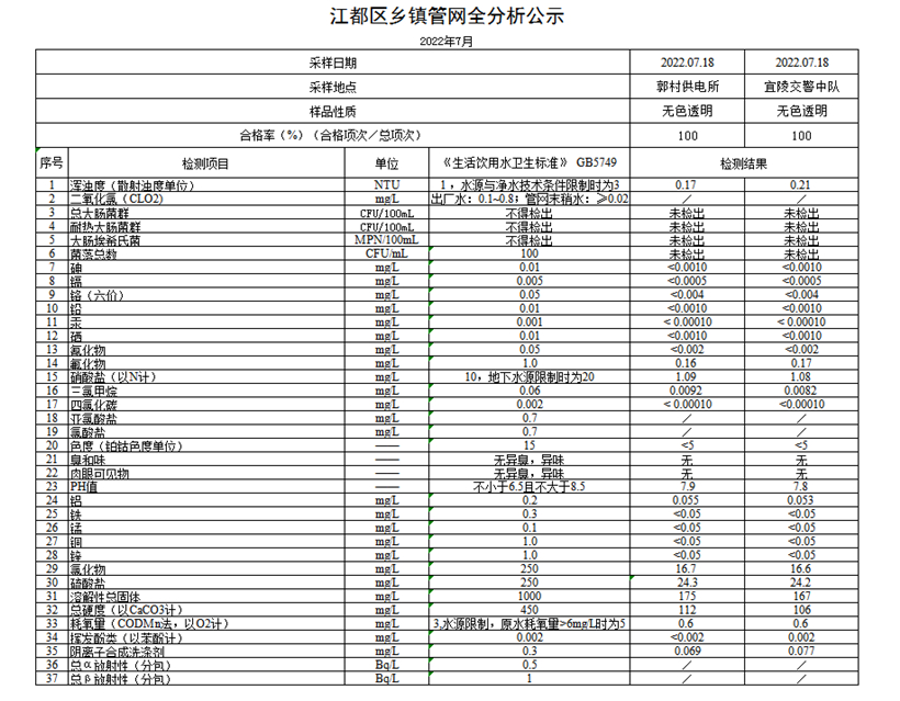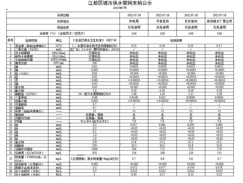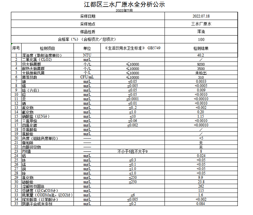 水質(zhì)公示