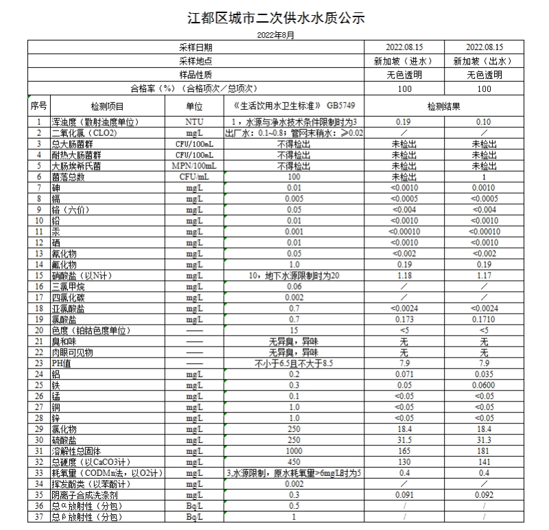 水質(zhì)公示