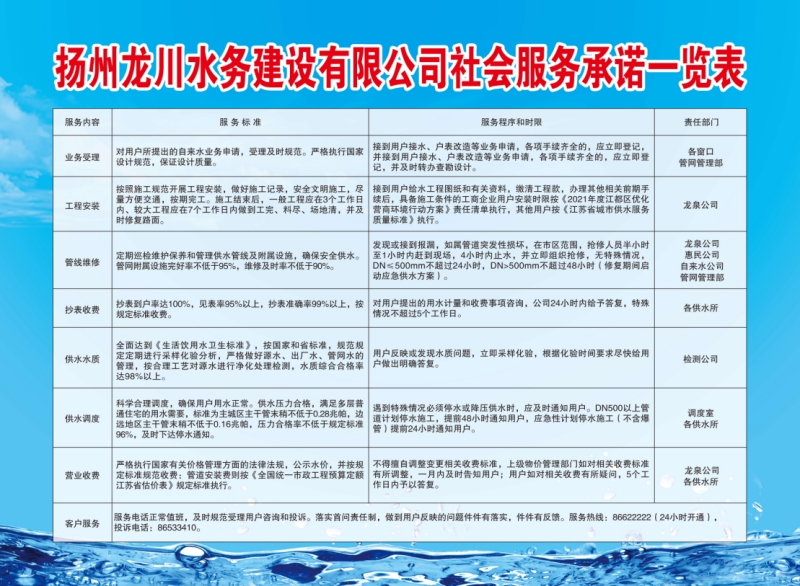 揚(yáng)州龍川控股水務(wù)建設(shè)有限公司社會服務(wù)承諾