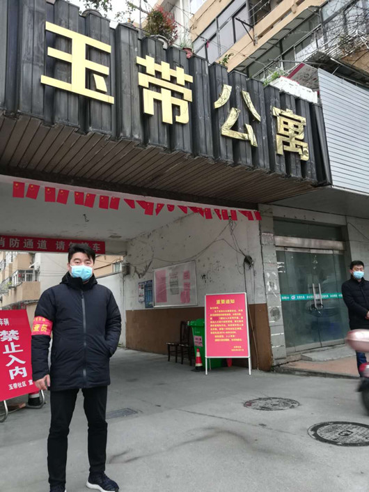 圖為王俊同志主動請戰(zhàn),積極深入玉帶社區(qū),開展聯(lián)防聯(lián)控志愿服務(wù)工作。