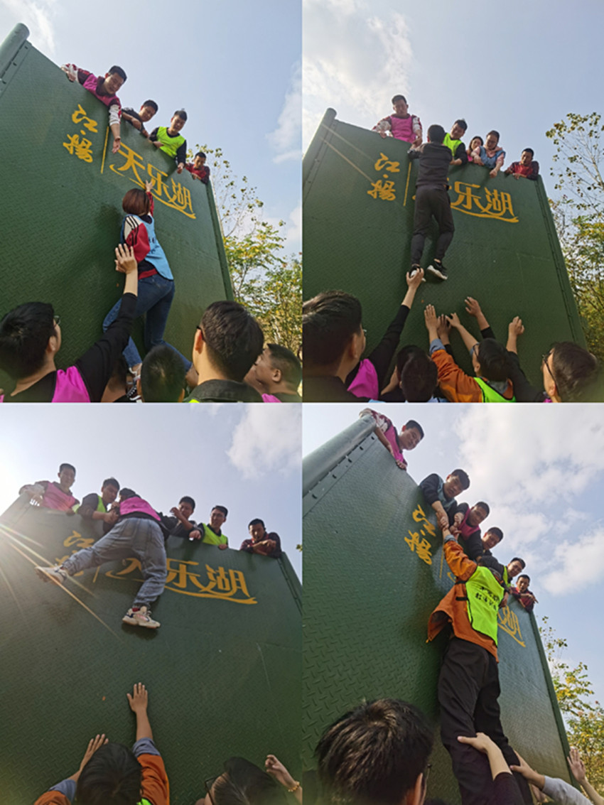 圖為團員青年齊心合力翻越 “畢業(yè)墻”