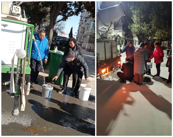 1月4日,經(jīng)過研究,并與物業(yè)公司協(xié)商后,制定以下方案:1.公司迅速增派送水車趕赴真武、邵伯兩地,為無水用戶進行送水服務,由物業(yè)公司負責維持送水車秩序;2.對有消火栓的小區(qū),打開消火栓,方便居民取水;3.通過用高壓鍋燒水,形成熱蒸氣,通過橡膠管將蒸氣充入供水管道內(nèi),逐漸將冰塊融化;4.對有人居住的房屋,逐戶檢查室內(nèi)銅接頭,防止出現(xiàn)化凍時銅接頭松動漏水,造成用戶損失;5.對無人居住的房屋,暫時關閉樓下表前表后閥門,待用戶回家檢查后及時打開閥門。
