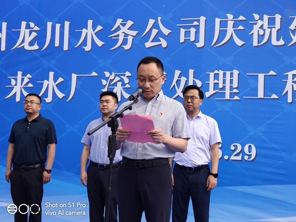 副區(qū)長(zhǎng)楊曉榮同志代表區(qū)委、區(qū)政府作重要講話,首先對(duì)龍川水務(wù)公司第二、三水廠深度處理工程的竣工投運(yùn)表示熱烈的祝賀,并強(qiáng)調(diào)指出,水是經(jīng)濟(jì)社會(huì)發(fā)展的重要基礎(chǔ)和關(guān)鍵命脈,龍川控股集團(tuán)委托深圳環(huán)水投資集團(tuán)運(yùn)營(yíng)龍川水務(wù)后,水務(wù)公司能緊緊圍繞民生所需、民眾所期、民心所盼,大力實(shí)施放心水、優(yōu)質(zhì)水工程,積極推進(jìn)供水支管網(wǎng)改造和污水管網(wǎng)、農(nóng)村污水處理設(shè)施建設(shè),為全區(qū)水生態(tài)文明建設(shè)作出了突出的貢獻(xiàn),龍川水務(wù)公司整體的質(zhì)態(tài)也有了較大的飛躍。希望以今天的通水儀式為新的起點(diǎn),不忘初心,牢記使命,乘風(fēng)破浪,穩(wěn)健前行,進(jìn)一步推進(jìn)供水事業(yè)發(fā)展,為江都的社會(huì)穩(wěn)定、經(jīng)濟(jì)發(fā)展做出更大的貢獻(xiàn)。