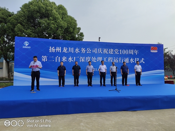 揚(yáng)州龍川控股集團(tuán)董事長(zhǎng)朱成勇同志在通水儀式上致辭,他表示,龍川水務(wù)公司第二、第三水廠深度處理工程正式通水,標(biāo)志著江都自來(lái)水真正實(shí)現(xiàn)了由“合格水”升級(jí)為“優(yōu)質(zhì)水”的飛躍,這既是江都供水事業(yè)發(fā)展的一件大事,更是全區(qū)群眾期盼已久的民生實(shí)事。同時(shí)熱切期望龍川水務(wù)公司作為有著42年發(fā)展底蘊(yùn)的國(guó)有企業(yè),今后要百尺竿頭,更進(jìn)一步,嚴(yán)格按照區(qū)委、區(qū)政府的最新要求,一如既往地堅(jiān)持好“優(yōu)質(zhì)供水、服務(wù)人民”的宗旨,不斷優(yōu)化工作理念,提升運(yùn)營(yíng)效率,系統(tǒng)推進(jìn)智慧水務(wù)建設(shè),為我區(qū)“兩爭(zhēng)一前列”提供更加有力的供水保障,讓水之城更美麗、更科技。