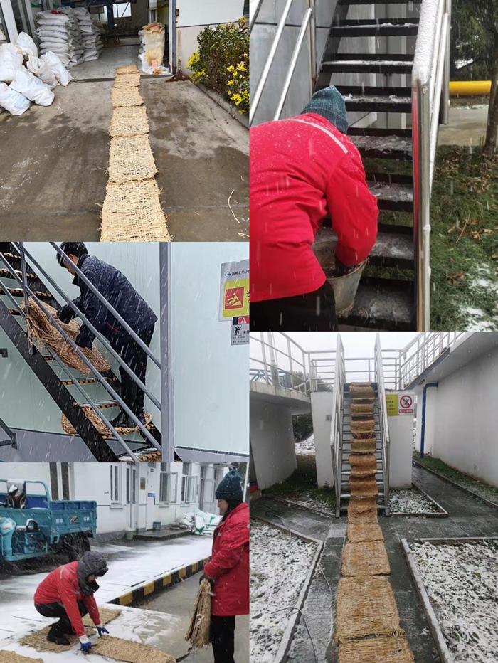 為提前做好雨雪冰凍天氣防范應對工作,避免雨雪冰凍天氣對污水廠安全穩(wěn)定生產(chǎn)運行帶來的不利影響和損失,我公司嚴格按照上級各有關(guān)指示精神,積極落實相關(guān)應對工作。各下屬污水廠高度重視,積極應對并迅速啟動雨雪冰凍天氣應急預案相關(guān)工作,各污水廠負責人積極宣傳相關(guān)文件精神,迅速組織全員加入應急隊伍中,提高全員防凍保溫及安全作業(yè)意識,強調(diào)全體運行工在工作中要加強巡視,發(fā)現(xiàn)問題及時報告廠區(qū)負責人,最大程度的減少冰凍雨雪天氣給廠區(qū)生產(chǎn)設備、運行及員工身體健康等方面帶來的不利影響。各廠負責人帶頭加入積雪清掃隊伍中,并在廠區(qū)重要工作部位鋪設草墊,做好防滑工作,各廠負責人提醒廠區(qū)值班人員在做好日常生產(chǎn)工作的同時,盡量減少登池作業(yè)頻次,全面保障人身安全,確保各廠區(qū)安全生產(chǎn)運作。