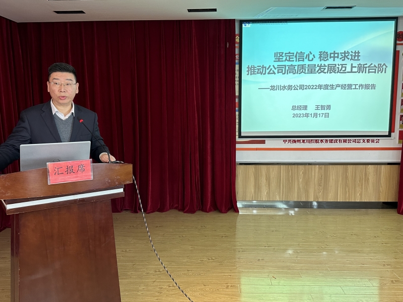 在本次大會(huì)匯報(bào)交流環(huán)節(jié),分別聽取了計(jì)劃財(cái)務(wù)部、運(yùn)營技術(shù)部、黨群工作部、自來水公司、惠民區(qū)域供水公司、龍泉建設(shè)工程公司、龍川污水處理公司等七個(gè)部門單位2022年工作總結(jié)報(bào)告。各部門、子公司負(fù)責(zé)人分別圍繞2022年全年生產(chǎn)經(jīng)營指標(biāo)、重點(diǎn)工作完成情況、存在的主要問題、解決對(duì)策以及2023年工作計(jì)劃作了交流匯報(bào)。