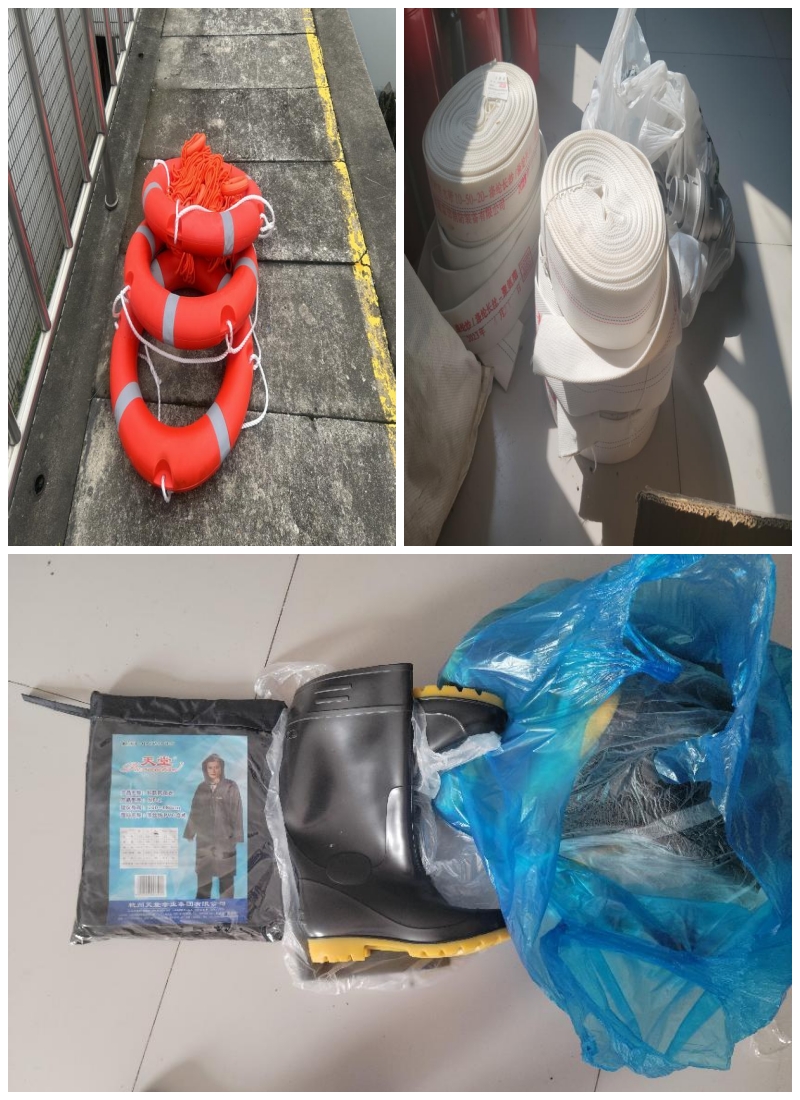 儲(chǔ)備防汛物資。汛期前,公司儲(chǔ)備了雨衣、雨靴、消防帶、照明用具等防汛物資,確保一旦需要,能夠及時(shí)調(diào)運(yùn)。