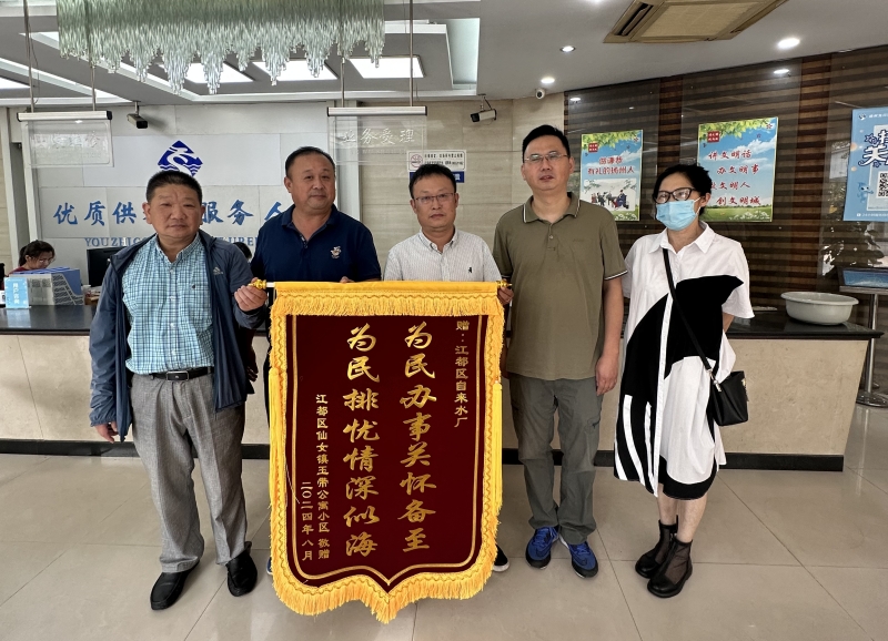 8月26日,揚州市江都區(qū)自來水有限公司收到一面繡有“為民辦事關(guān)懷備至,為民排憂情深似海”的錦旗。“沒想到自來水管道這么快就修好了,真的是感謝你們,為你們高效、優(yōu)質(zhì)、熱情的服務(wù)點贊!”江都區(qū)仙女鎮(zhèn)玉帶公寓小區(qū)的居民激動地說道。